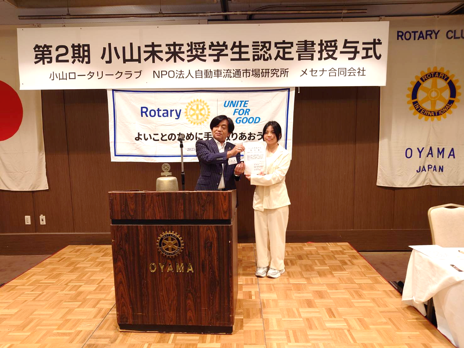 TOP-お知らせ表示2025.10.012025年8月7日 認定書授与式に参加しました 8月7日にジャイトルさん(フィリピン、結城一高1年生)が、小山ロータリークラブの奨学生に選出され、認定書授与式に参加しました。