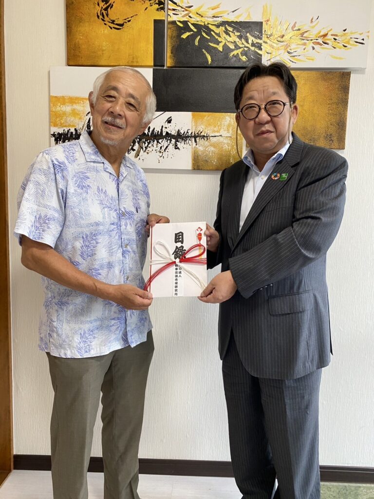 TOP-お知らせ表示2025.10.01「NPO法人自動車流通市場研究所」より助成金を受けとりました 貧困や、ネグレクトによって居場所のない子供たちに、義務教育以降の就学、就業の支援活動を行ている「NPO法人自動車流通市場研究所」より、助成金を受けとりました。 右側が中尾聡研究所理事長